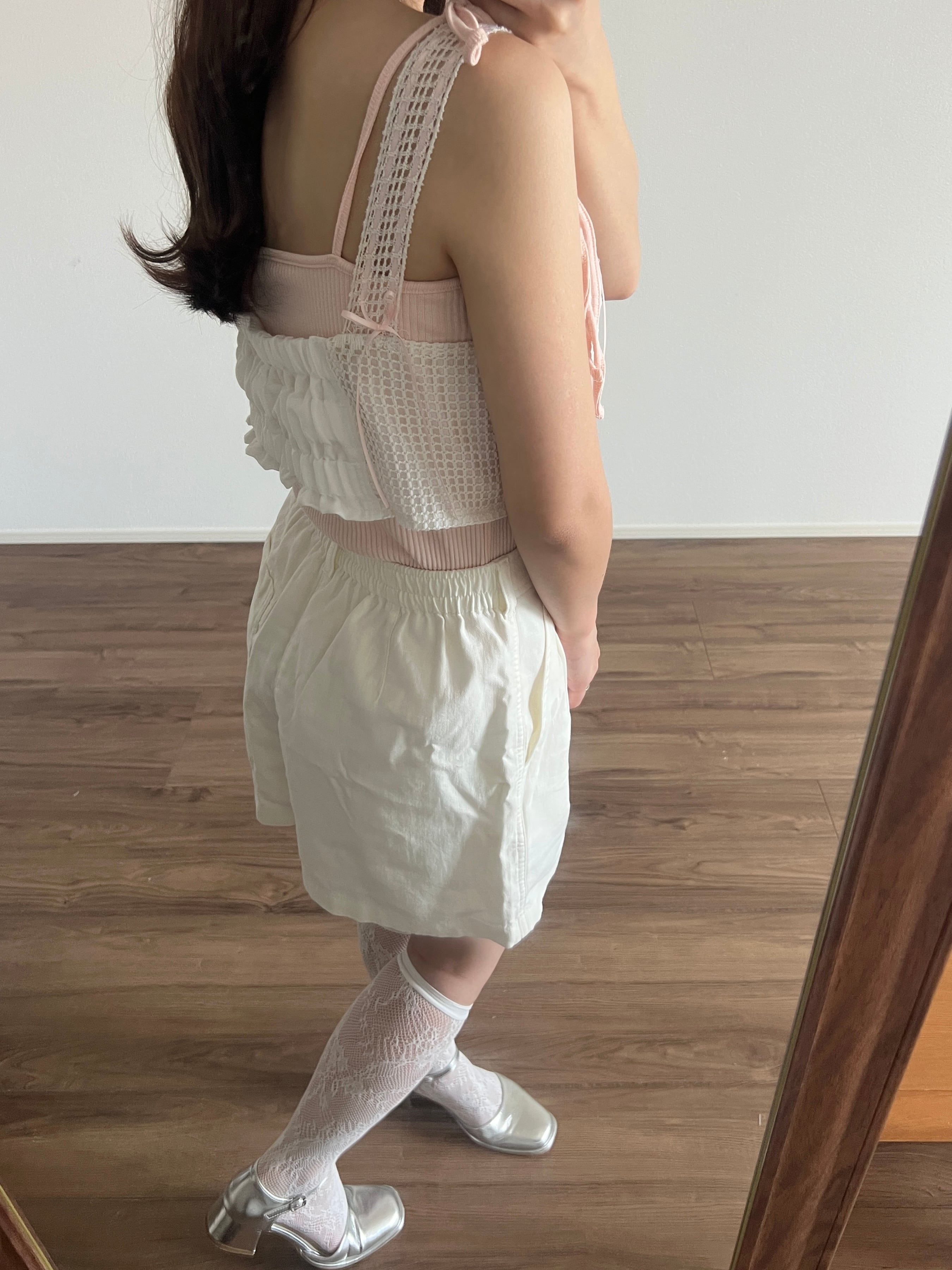 ※クロシェ生地は繊細なため、強く引っ張ると破れる可能性がございます。着用の際はご注意ください。