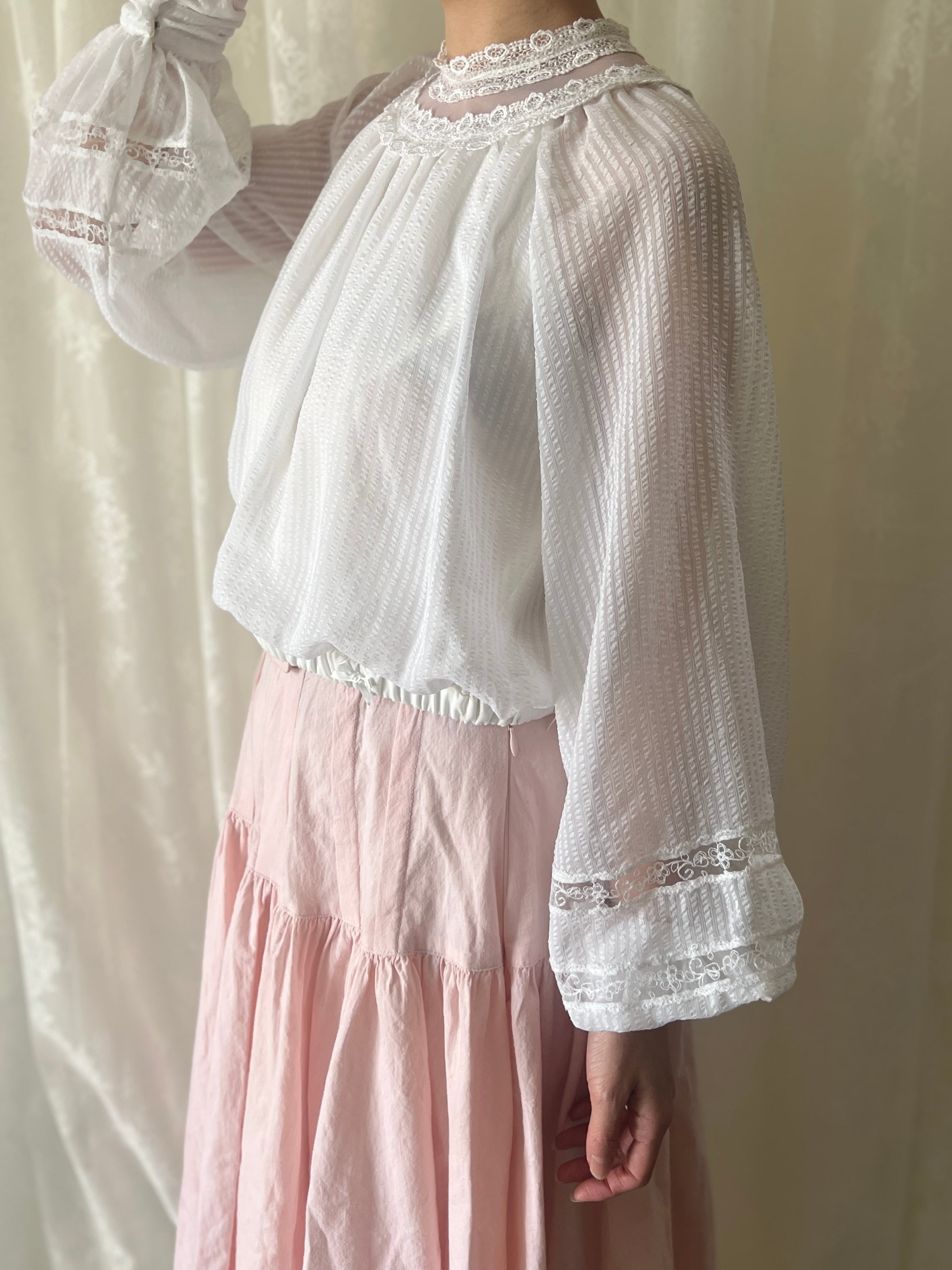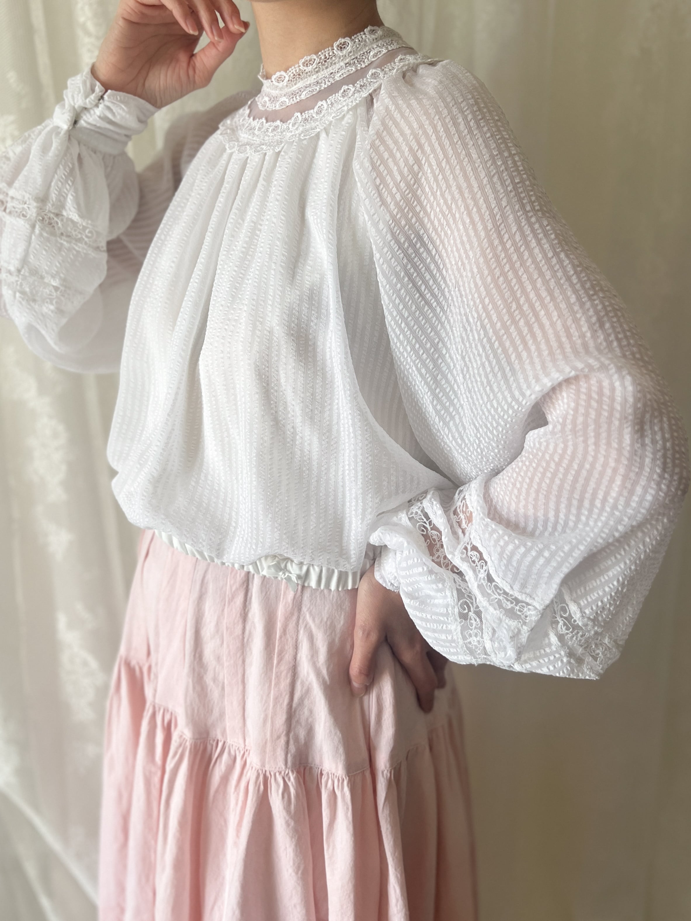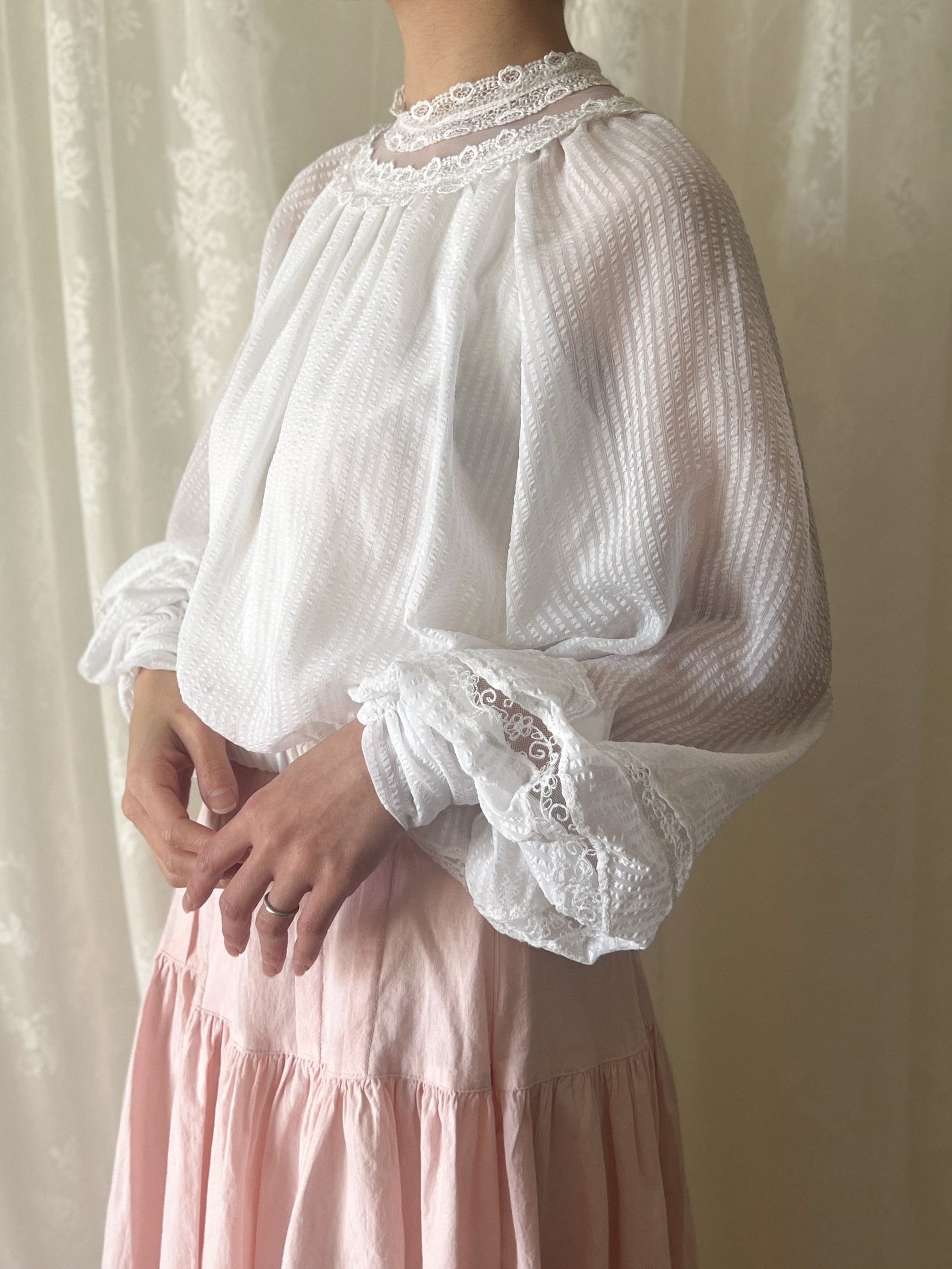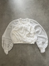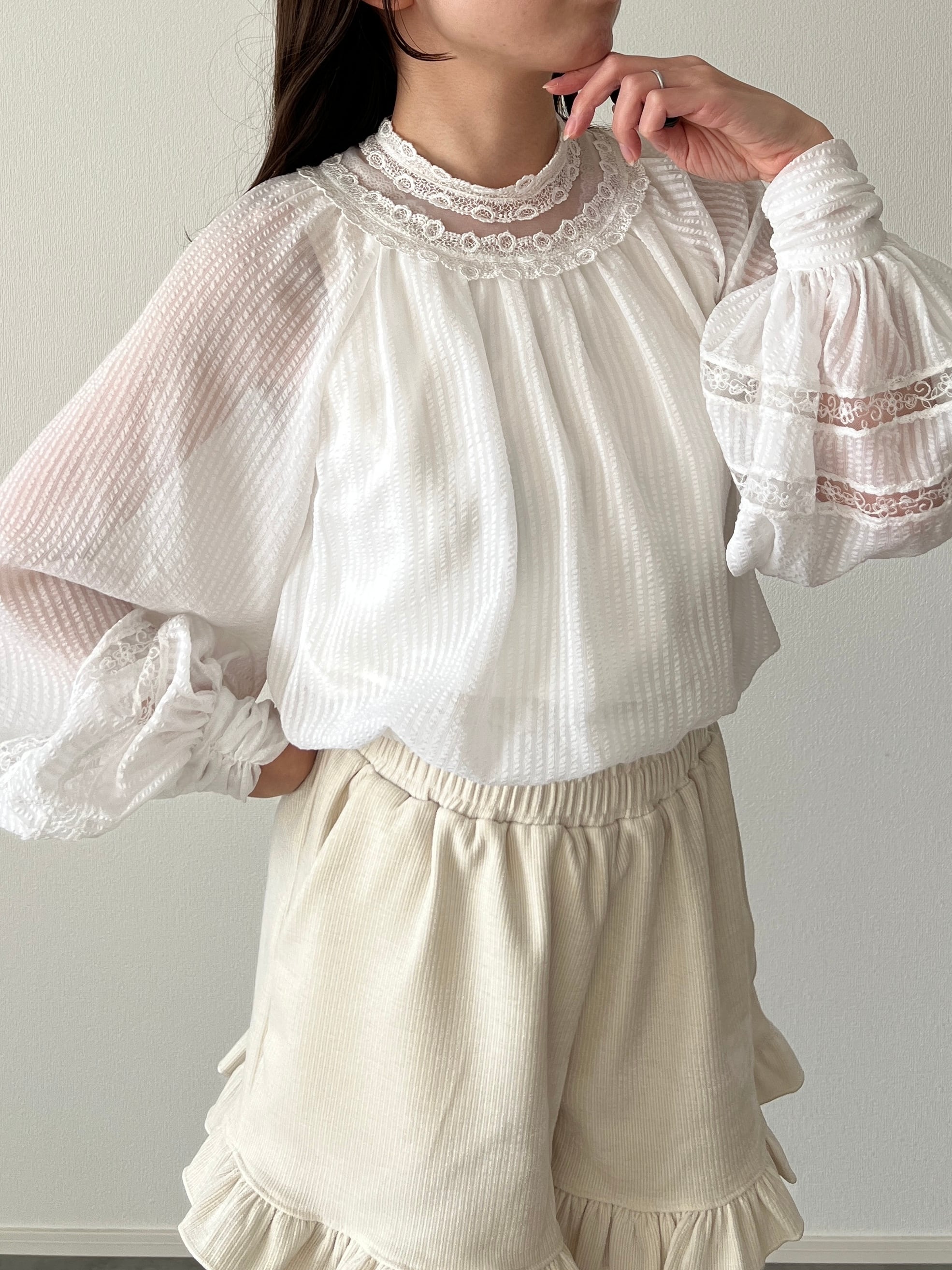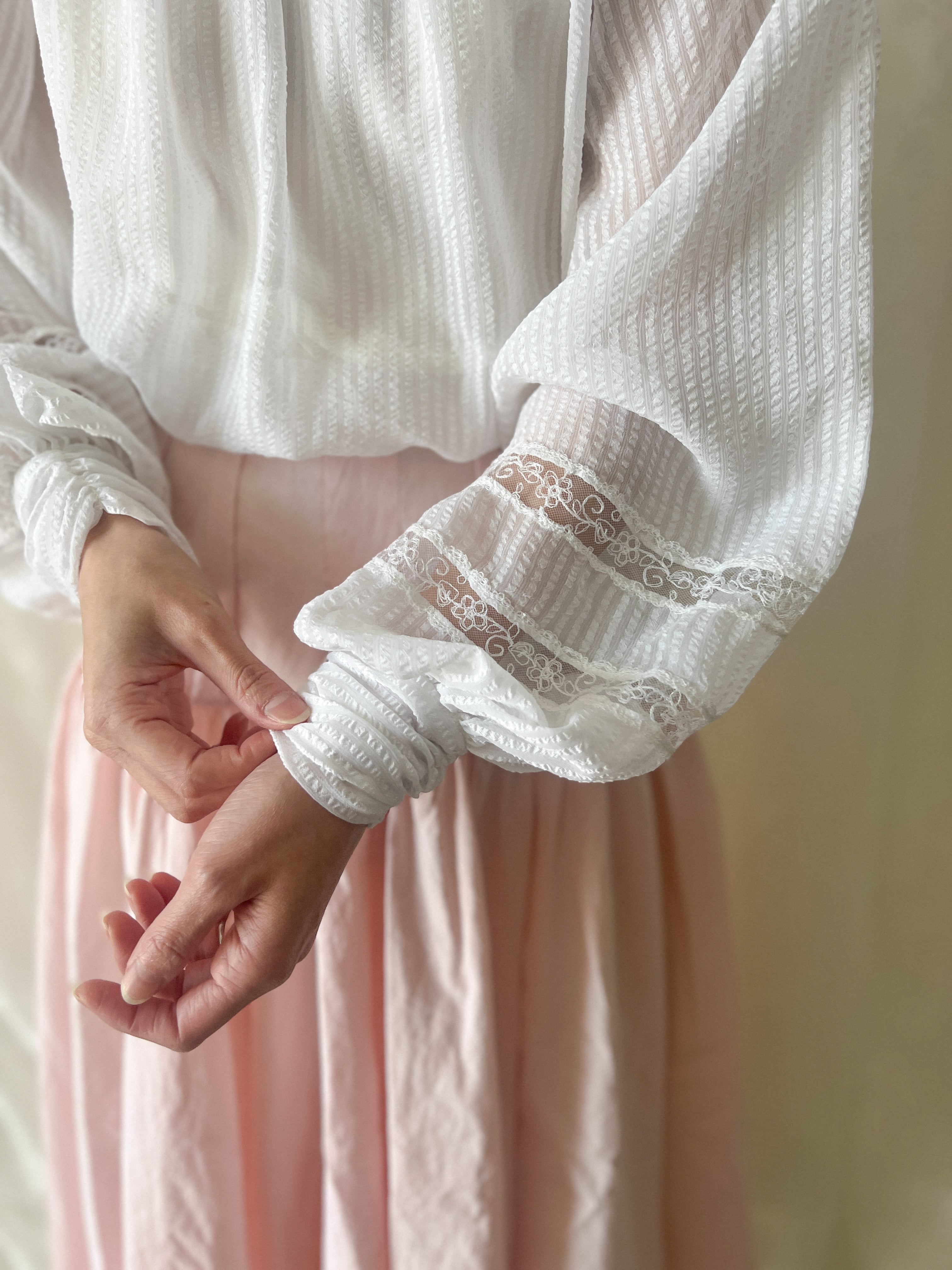 ふんわりと膨らむ袖、レースの切替デザイン‥。
