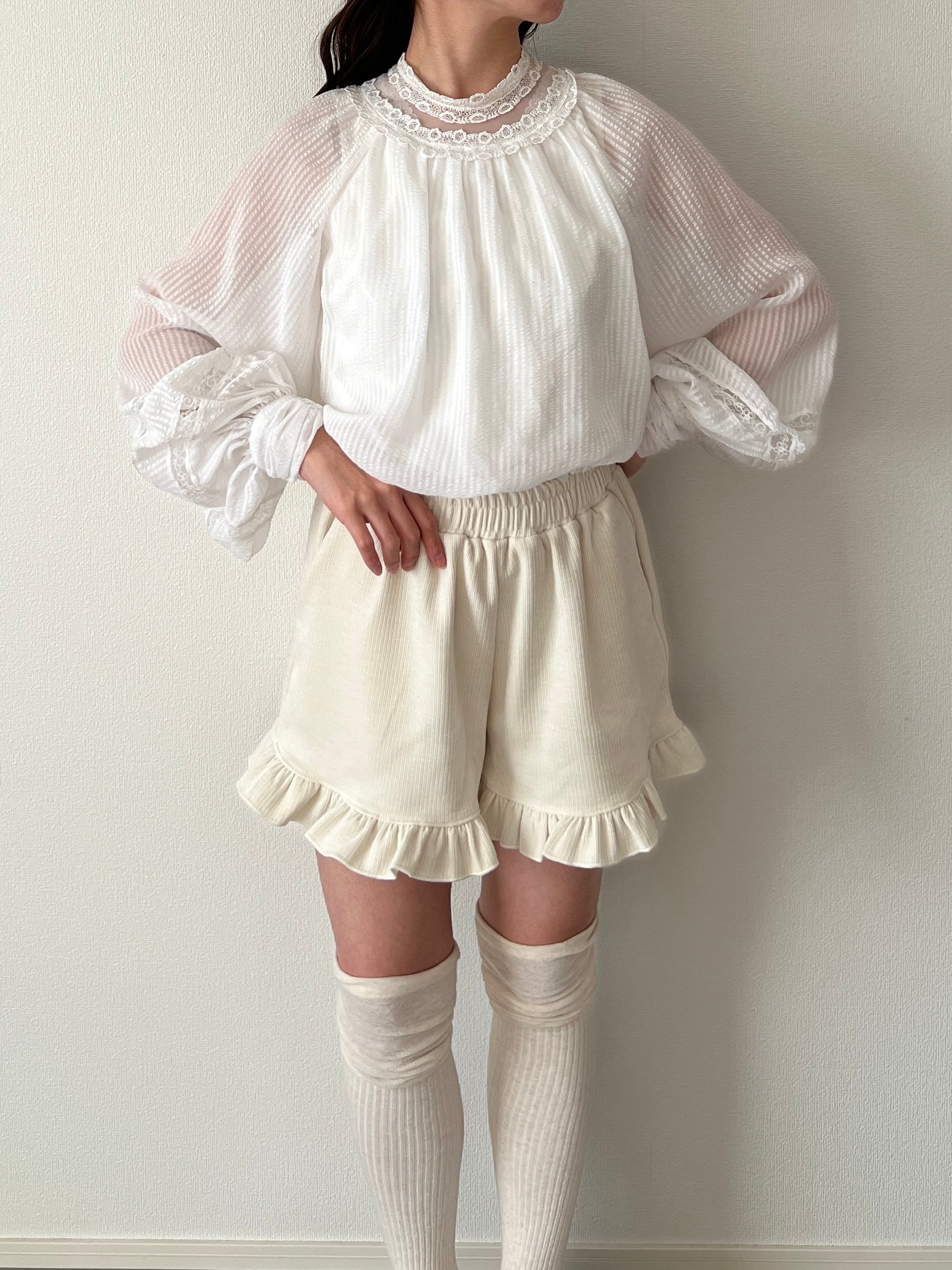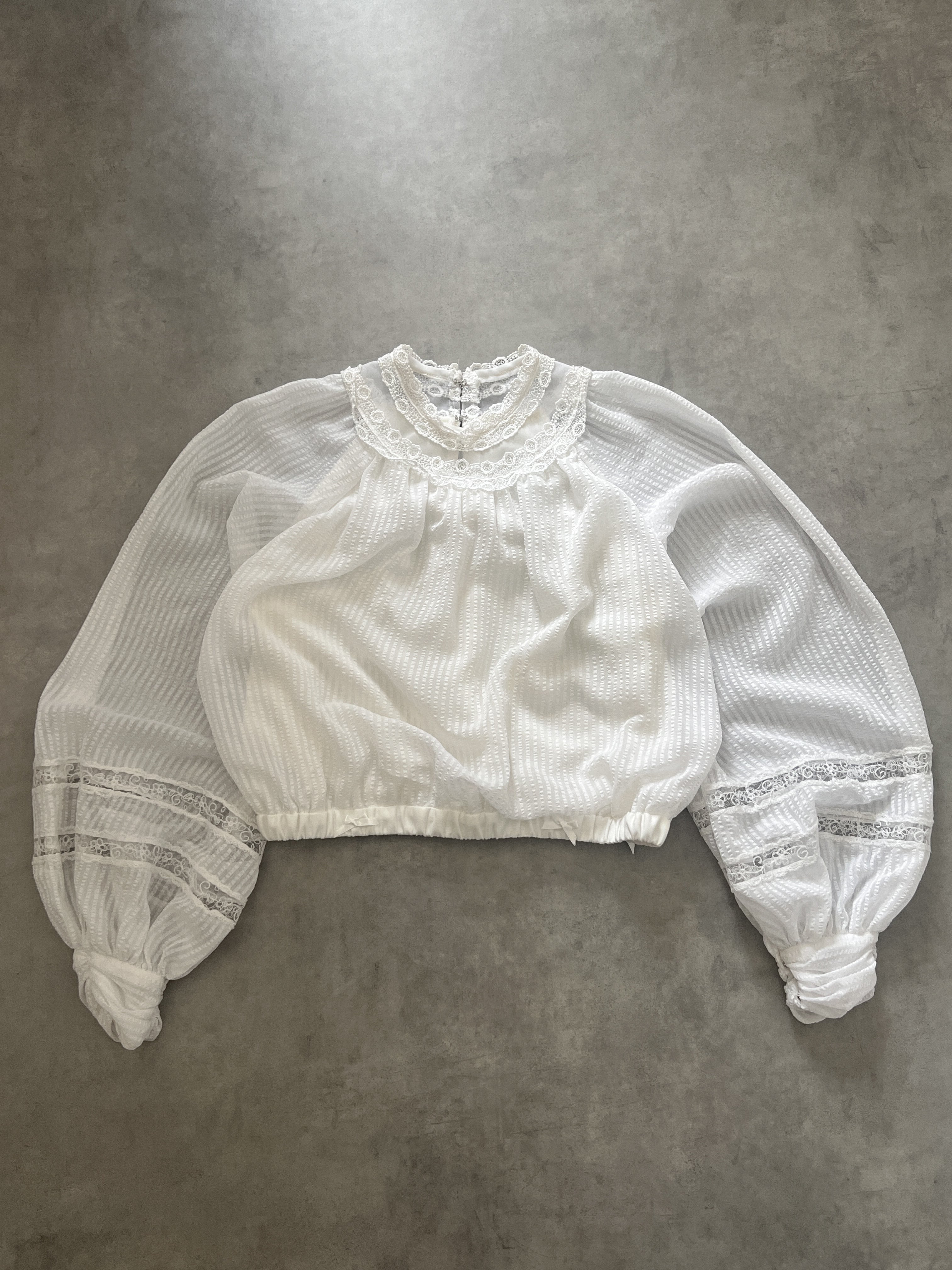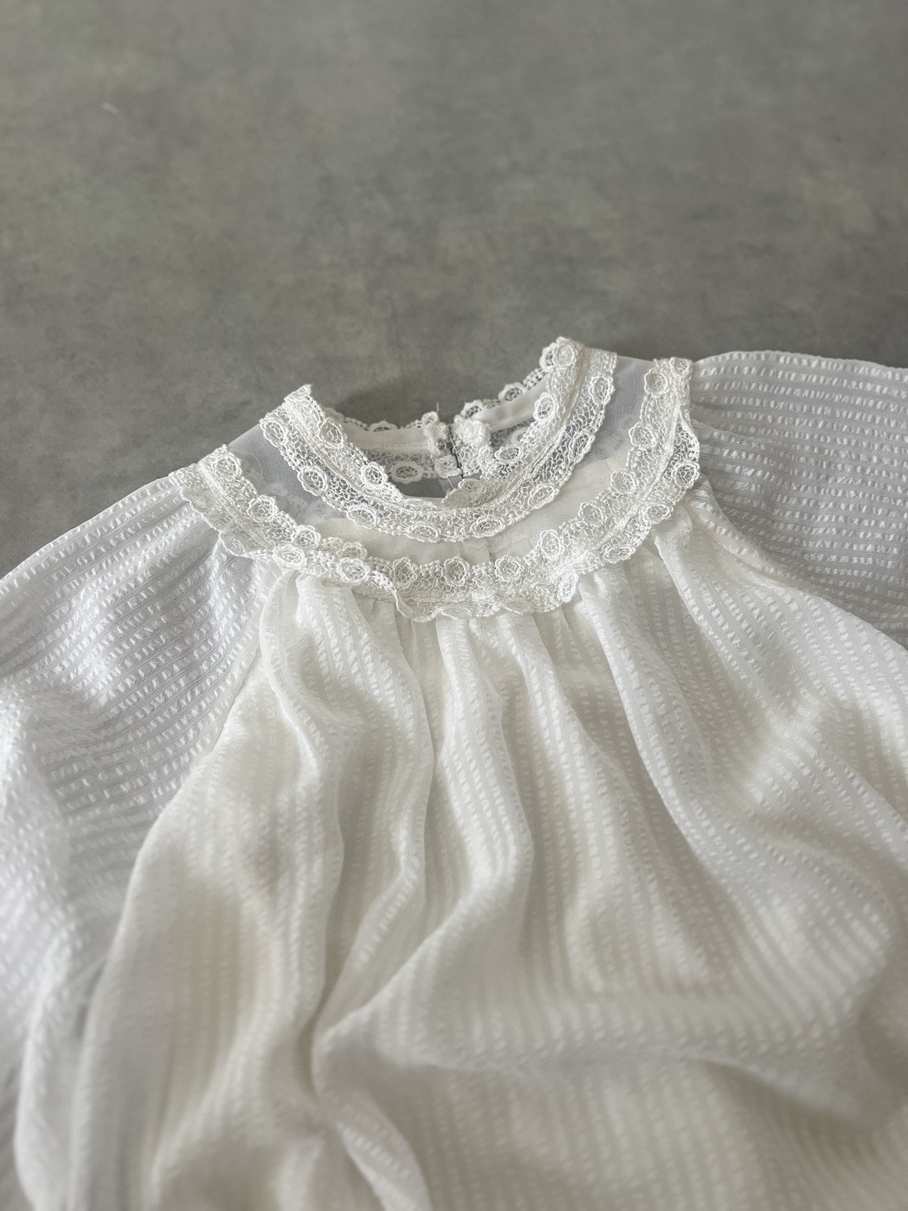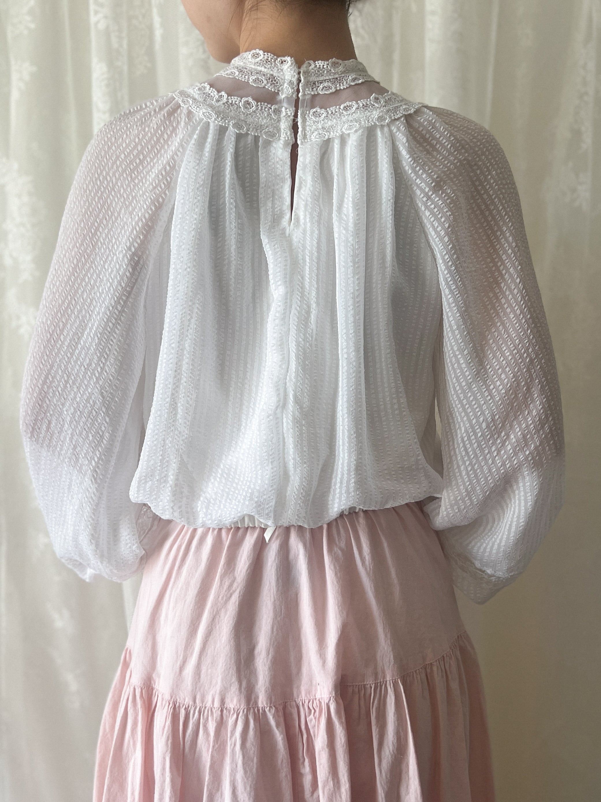 ふんわりと膨らむ袖、レースの切替デザイン‥。