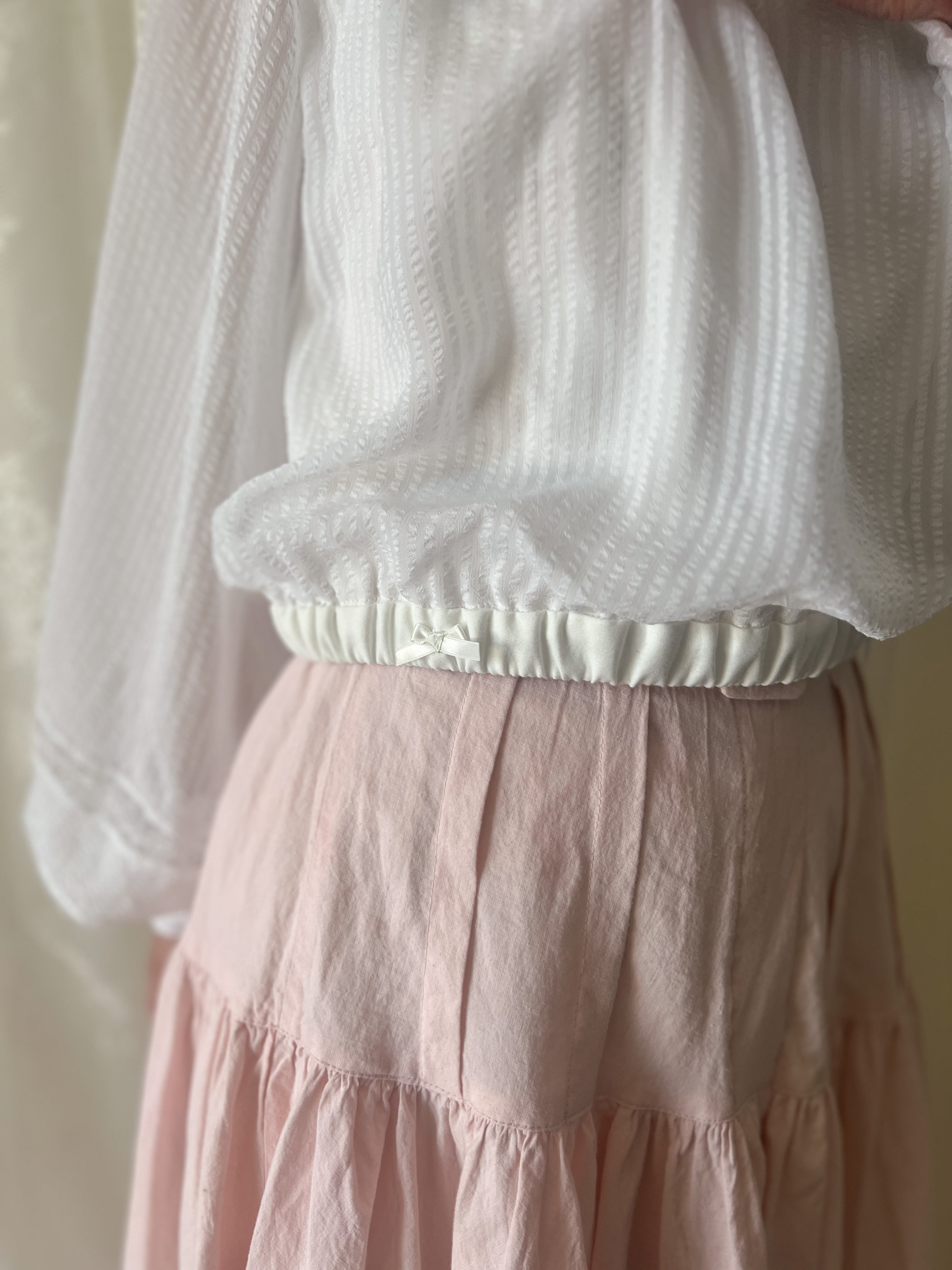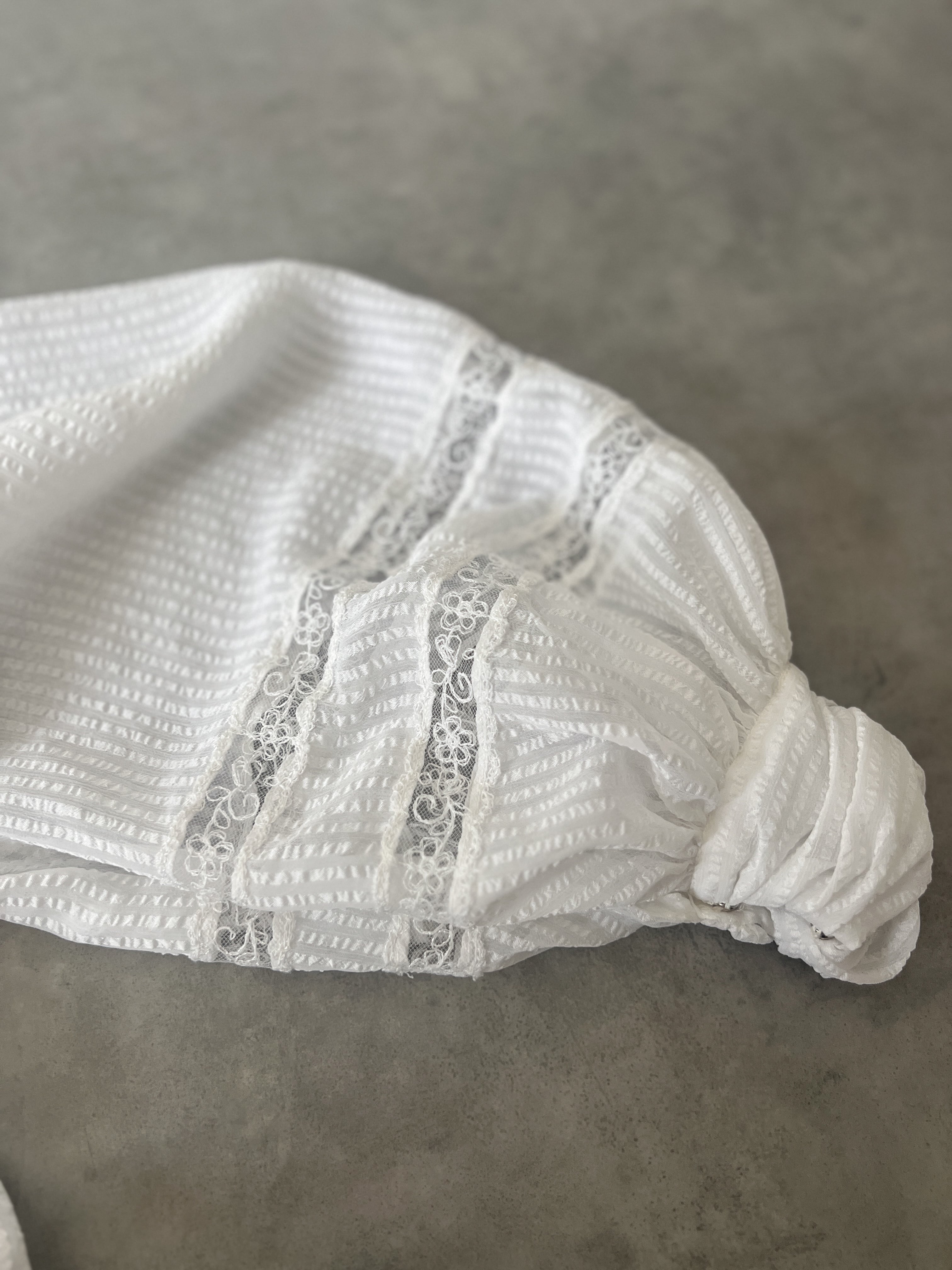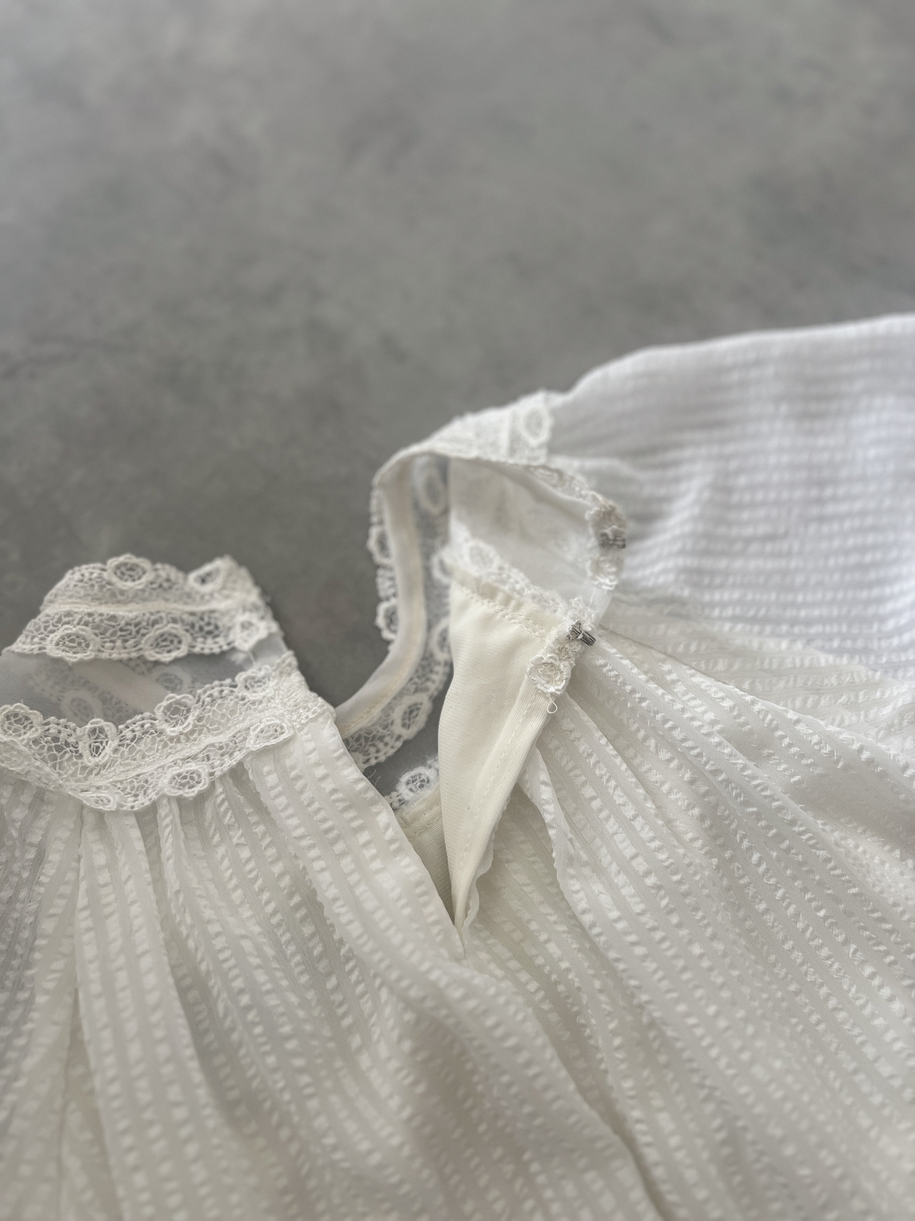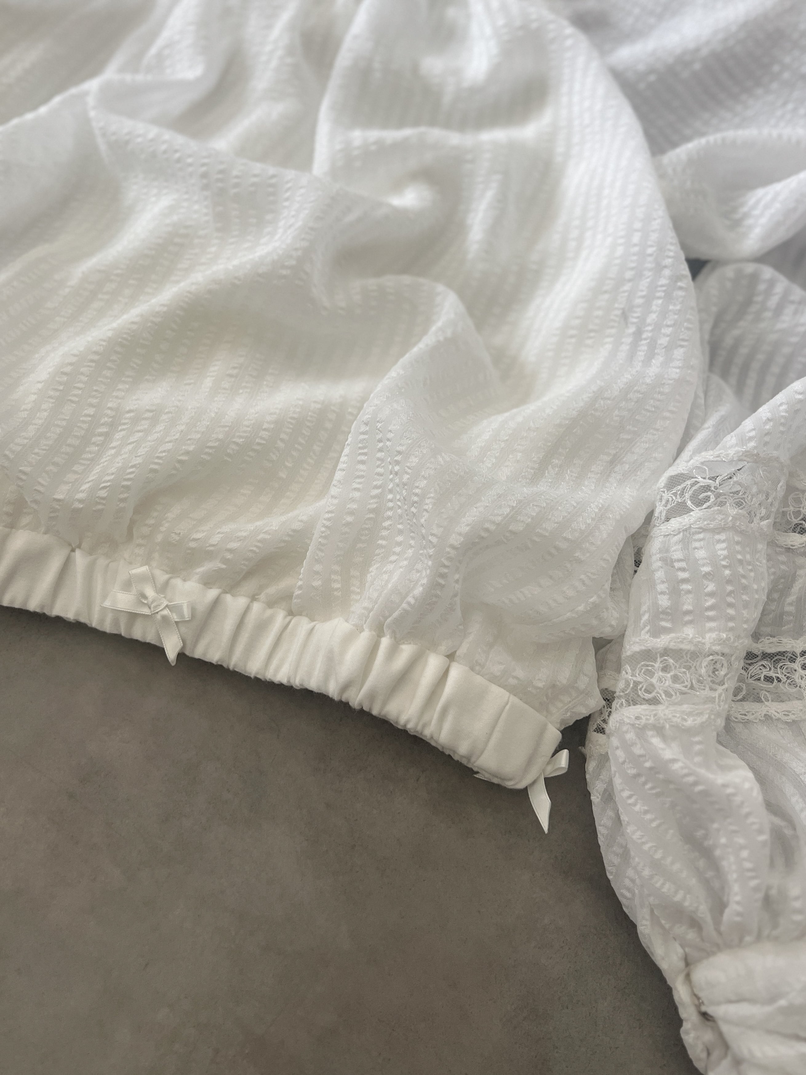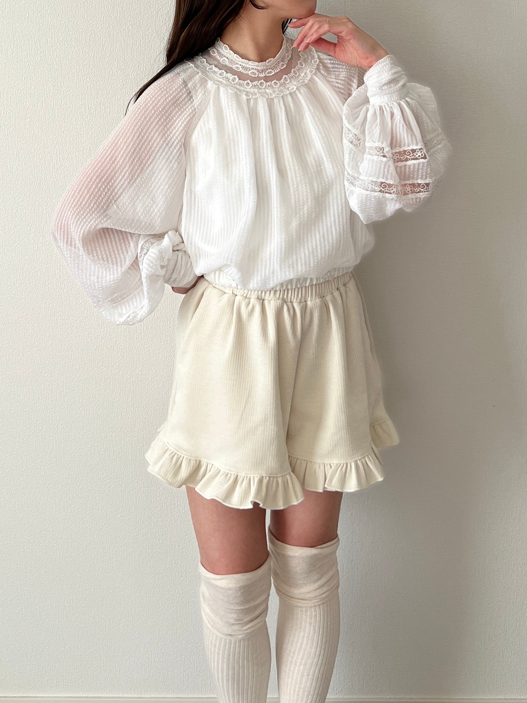 ふんわりと膨らむ袖、レースの切替デザイン‥。
