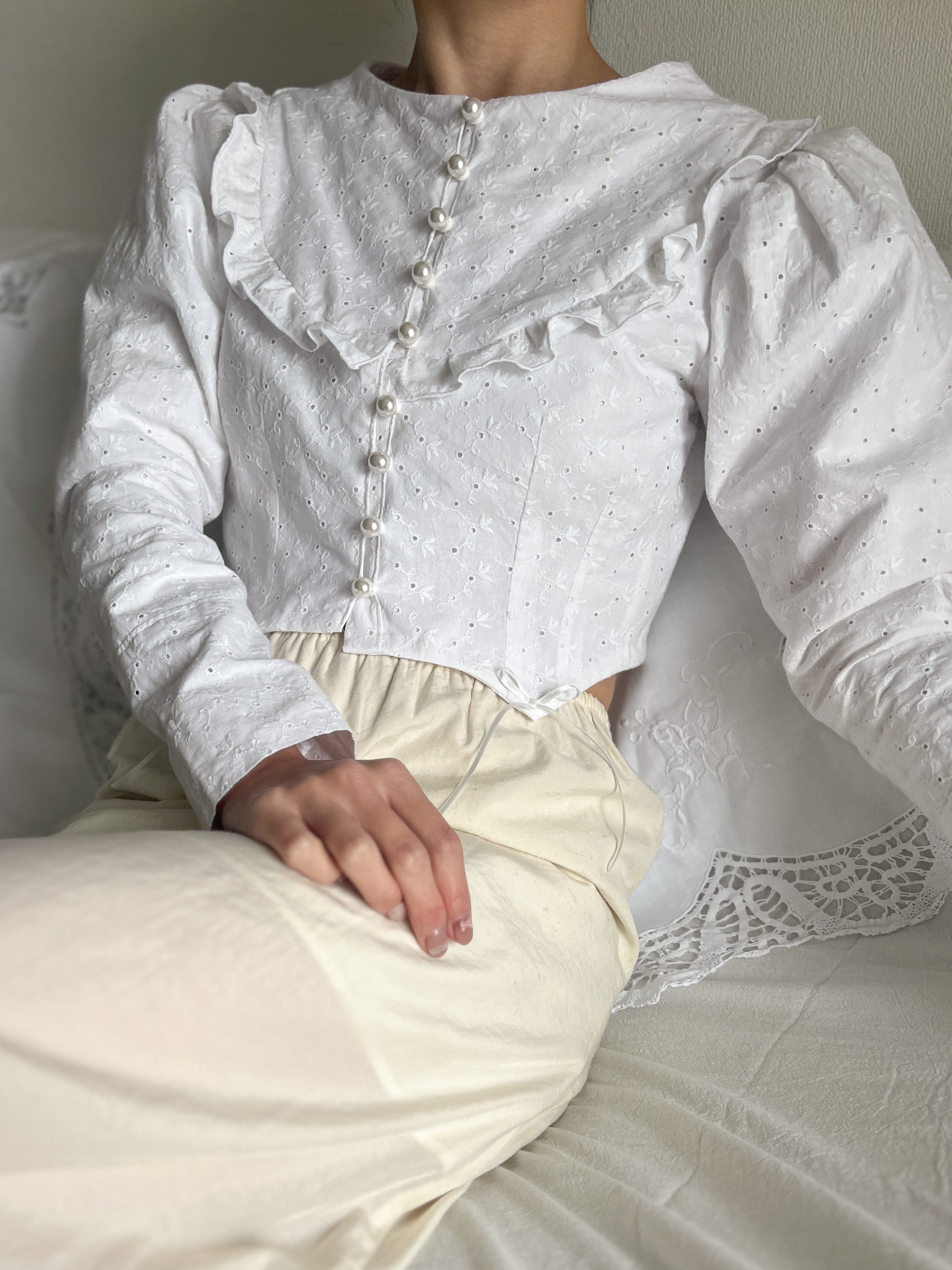 コットンレースのブラウスジャケット。