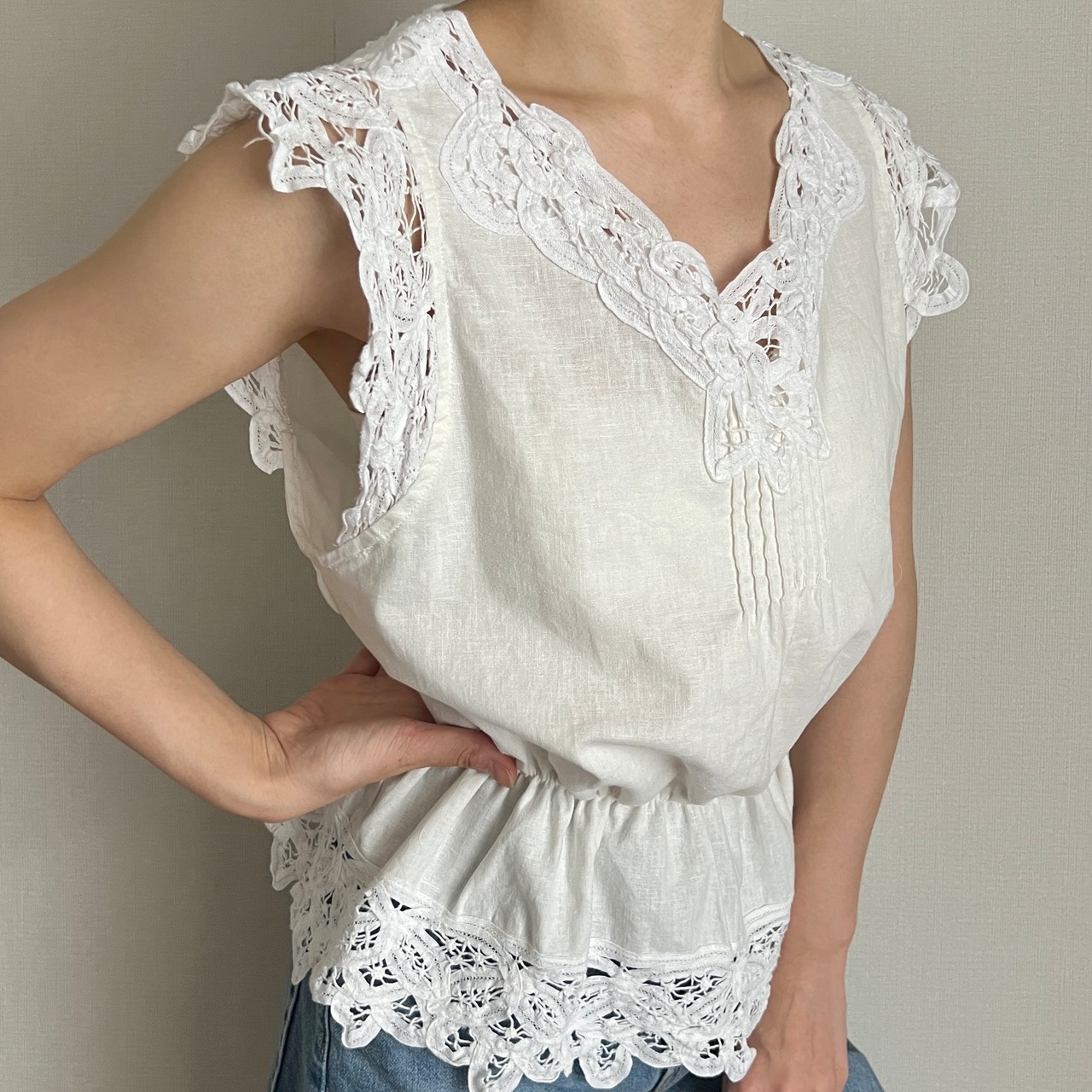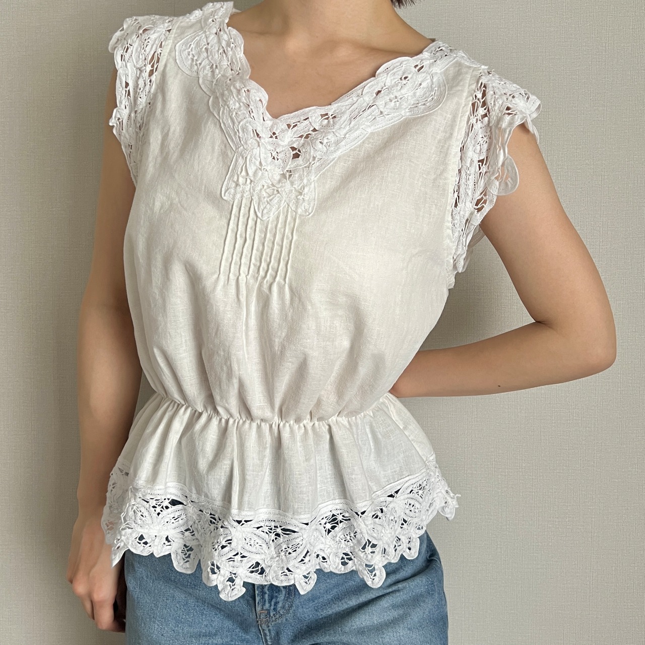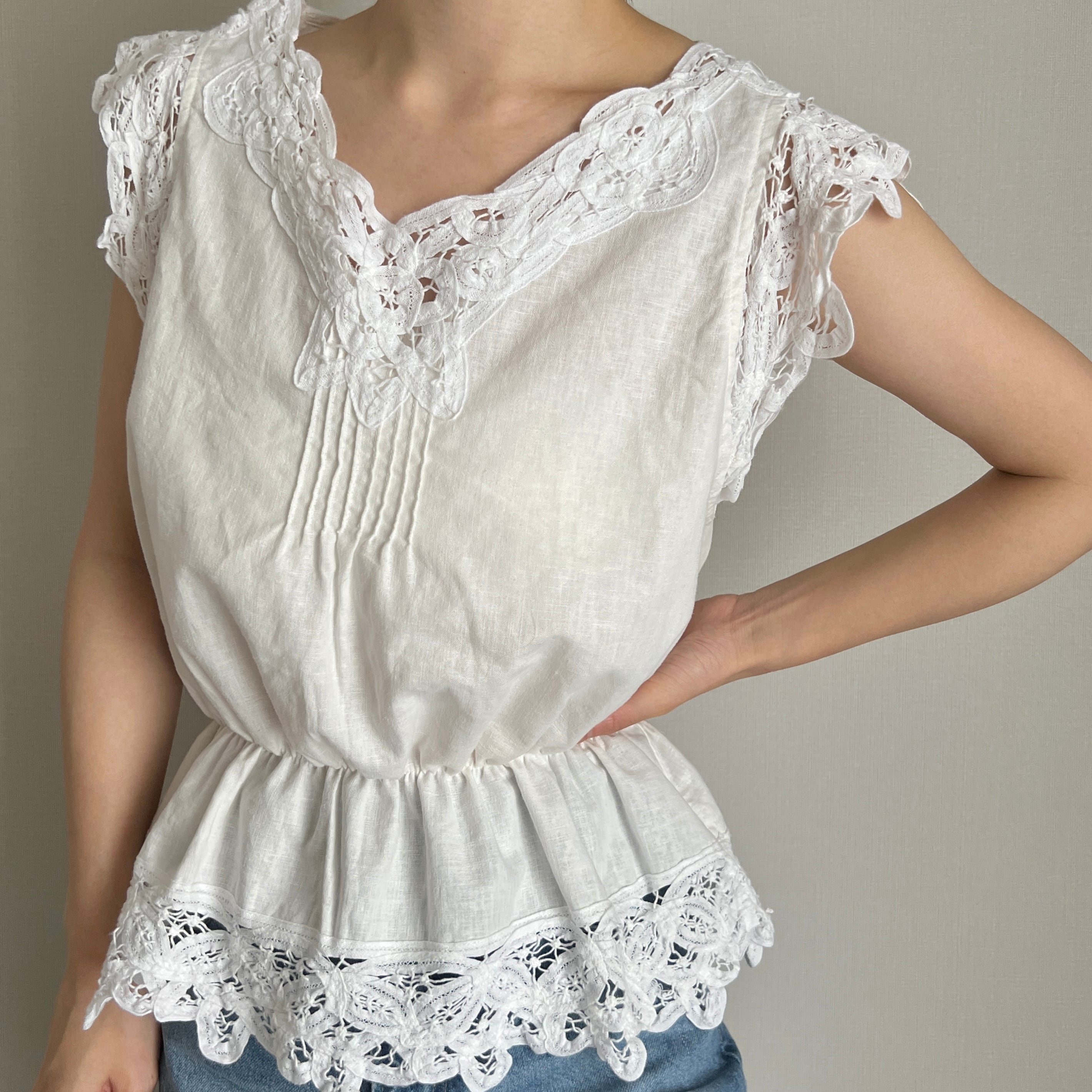 cotton lace sleeveless blouse