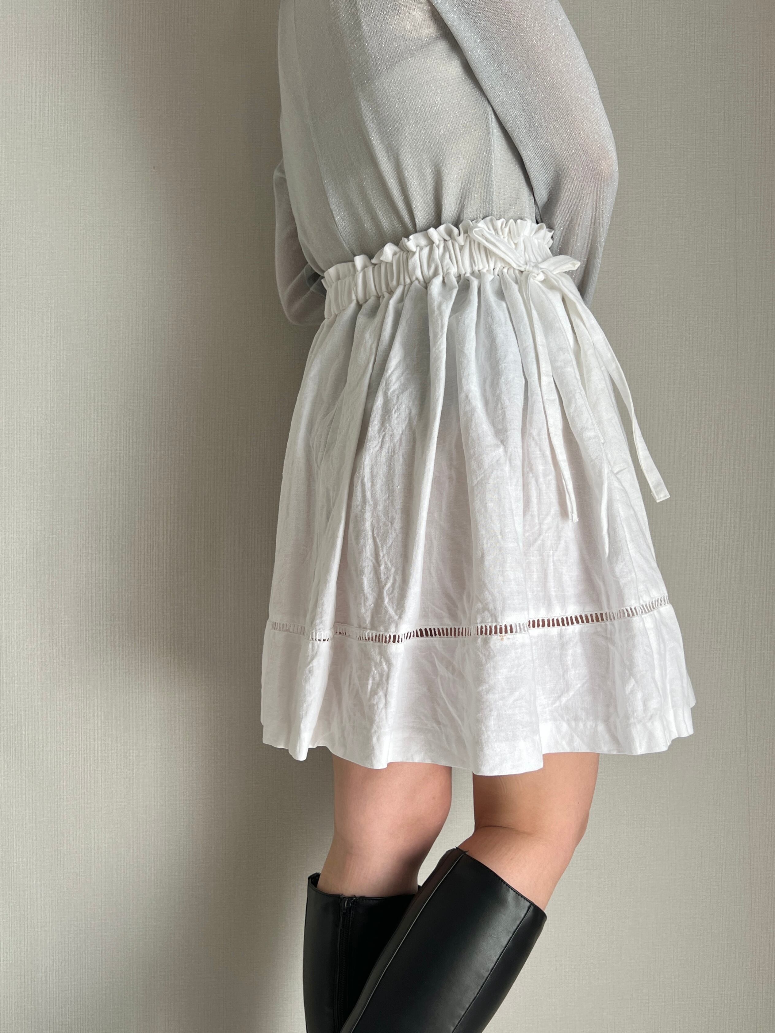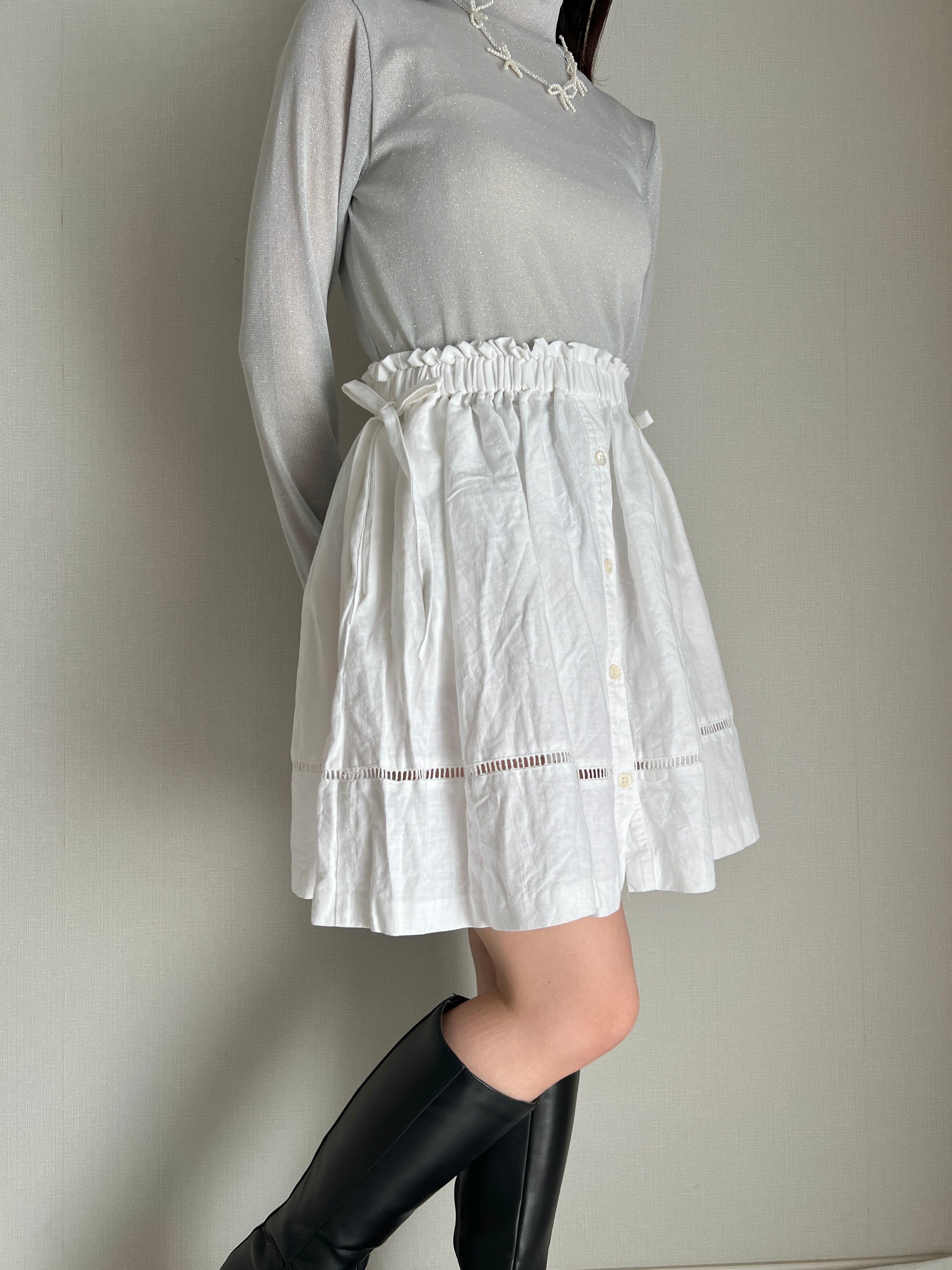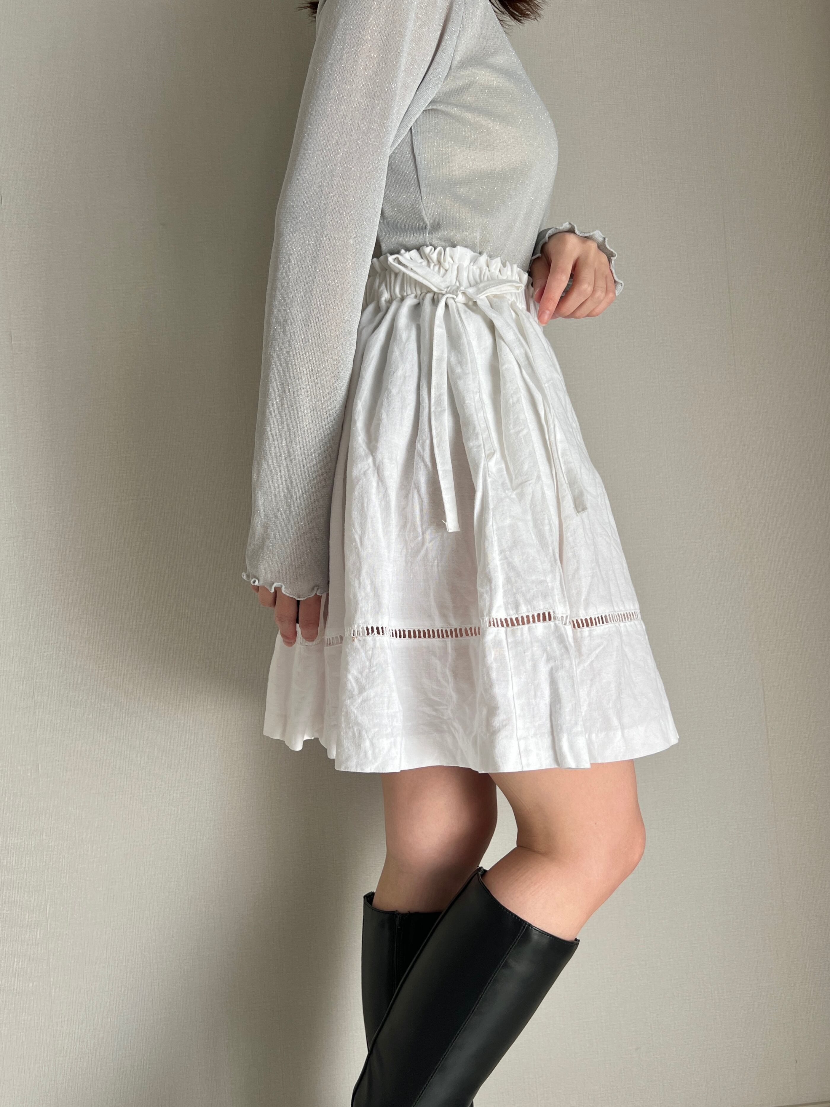 side ribbon cotton skirt
