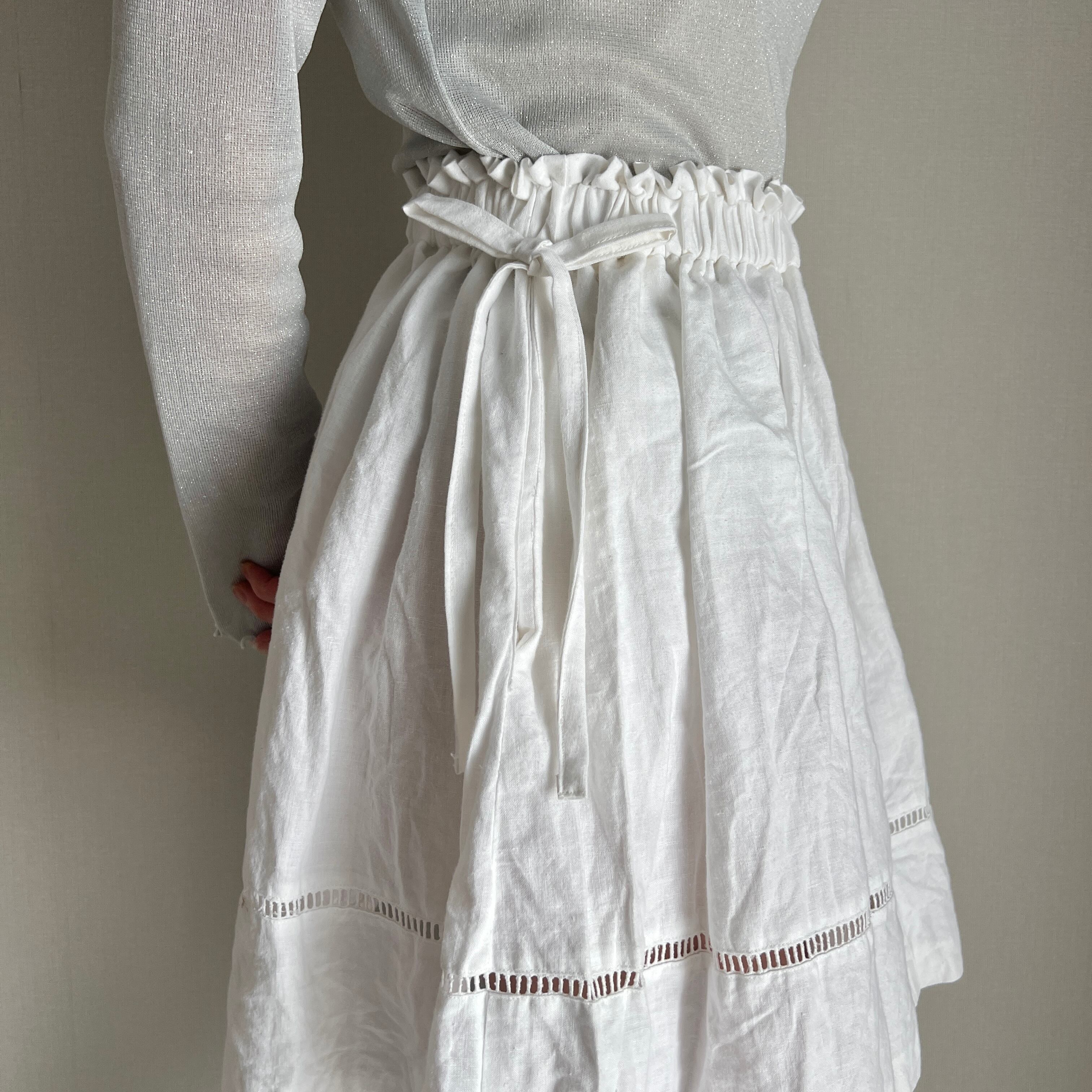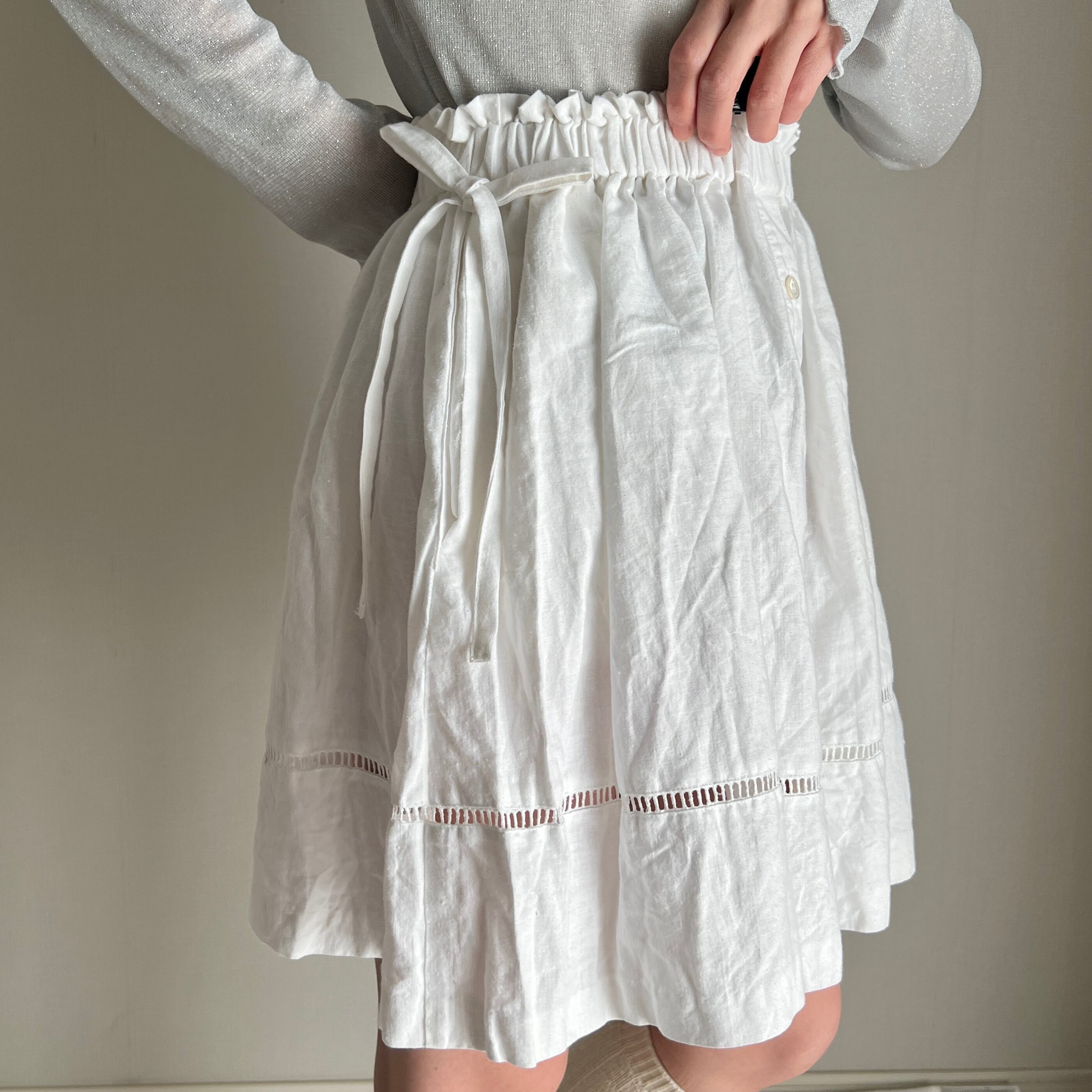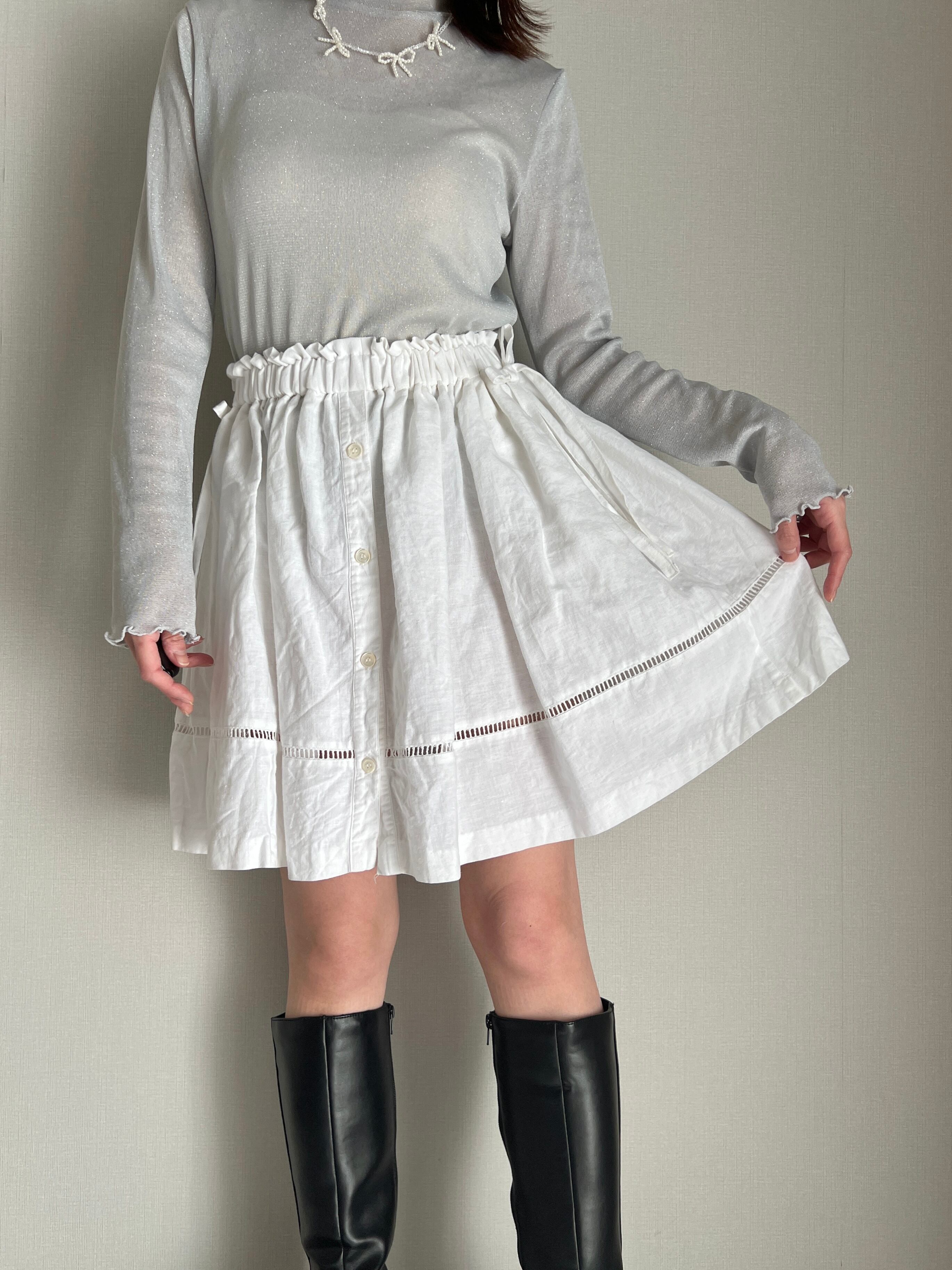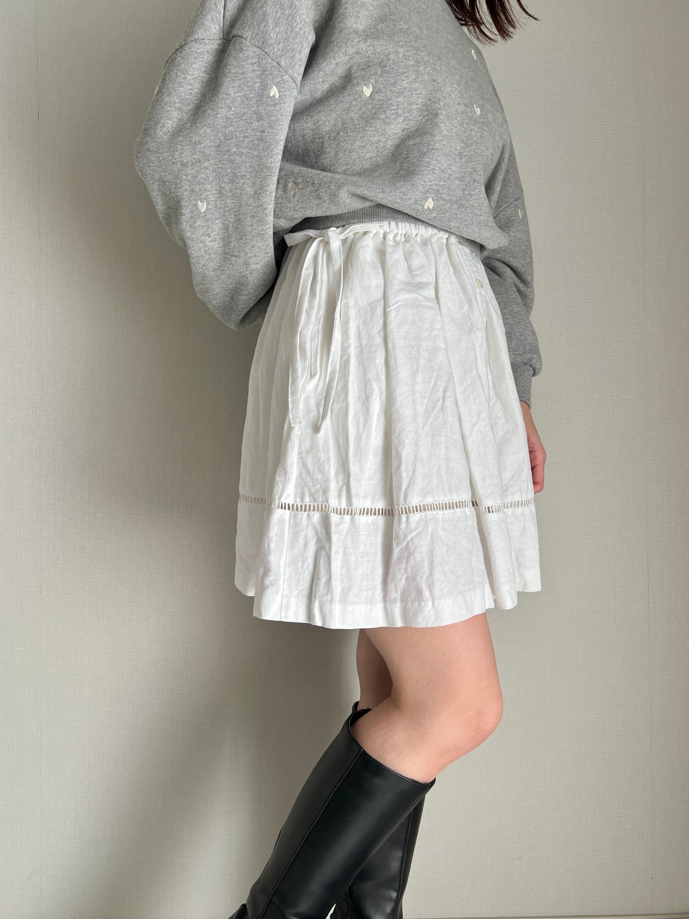 side ribbon cotton skirt