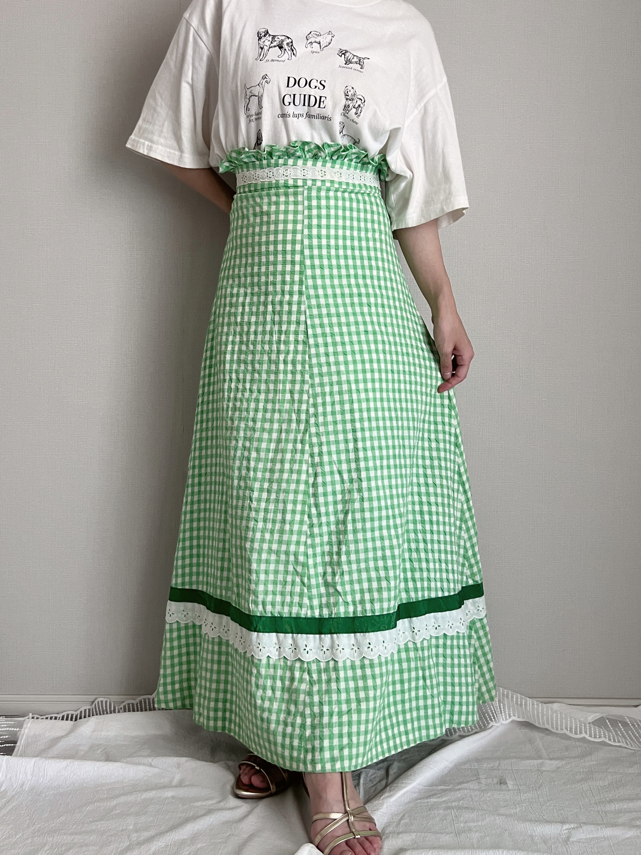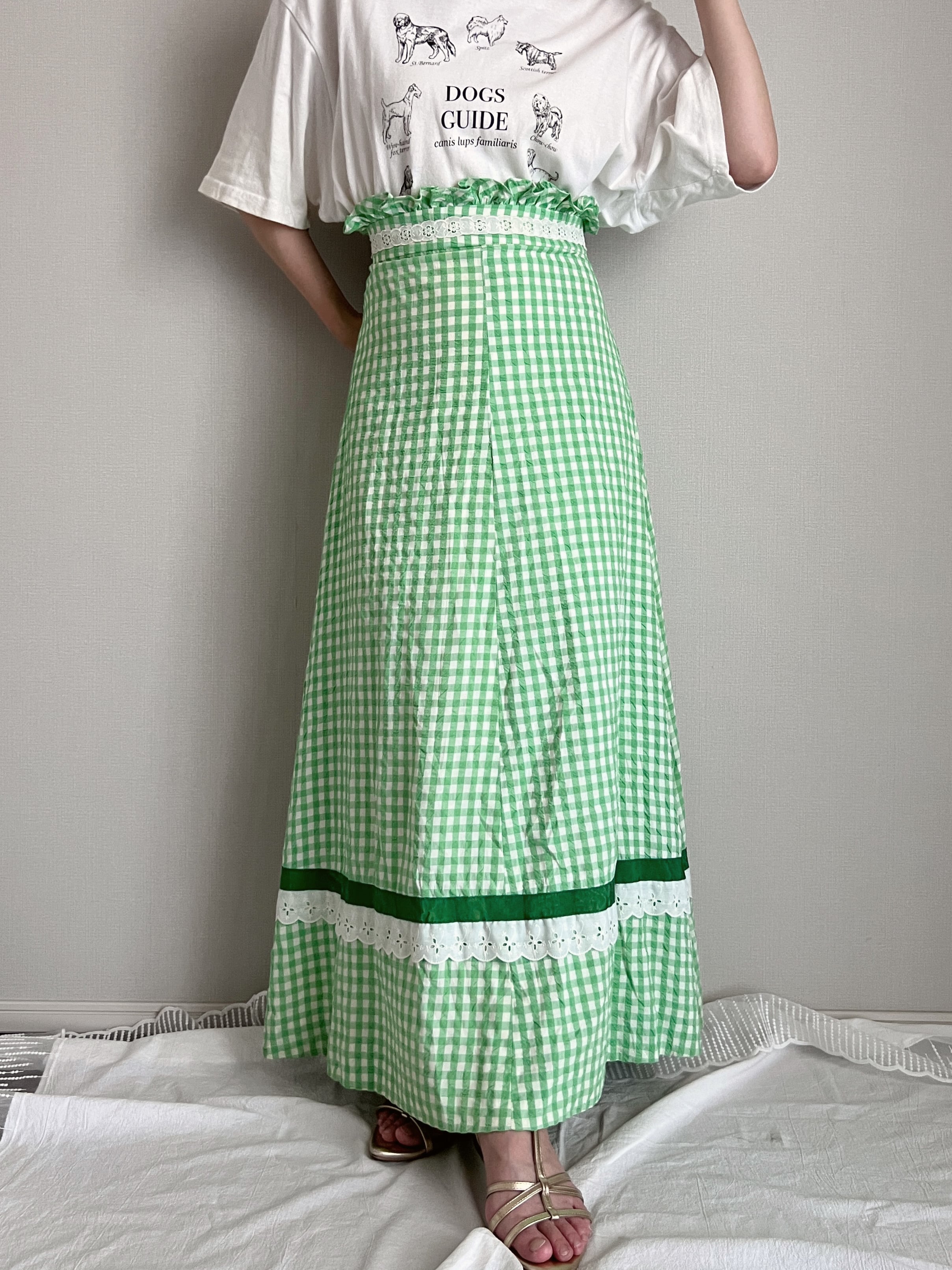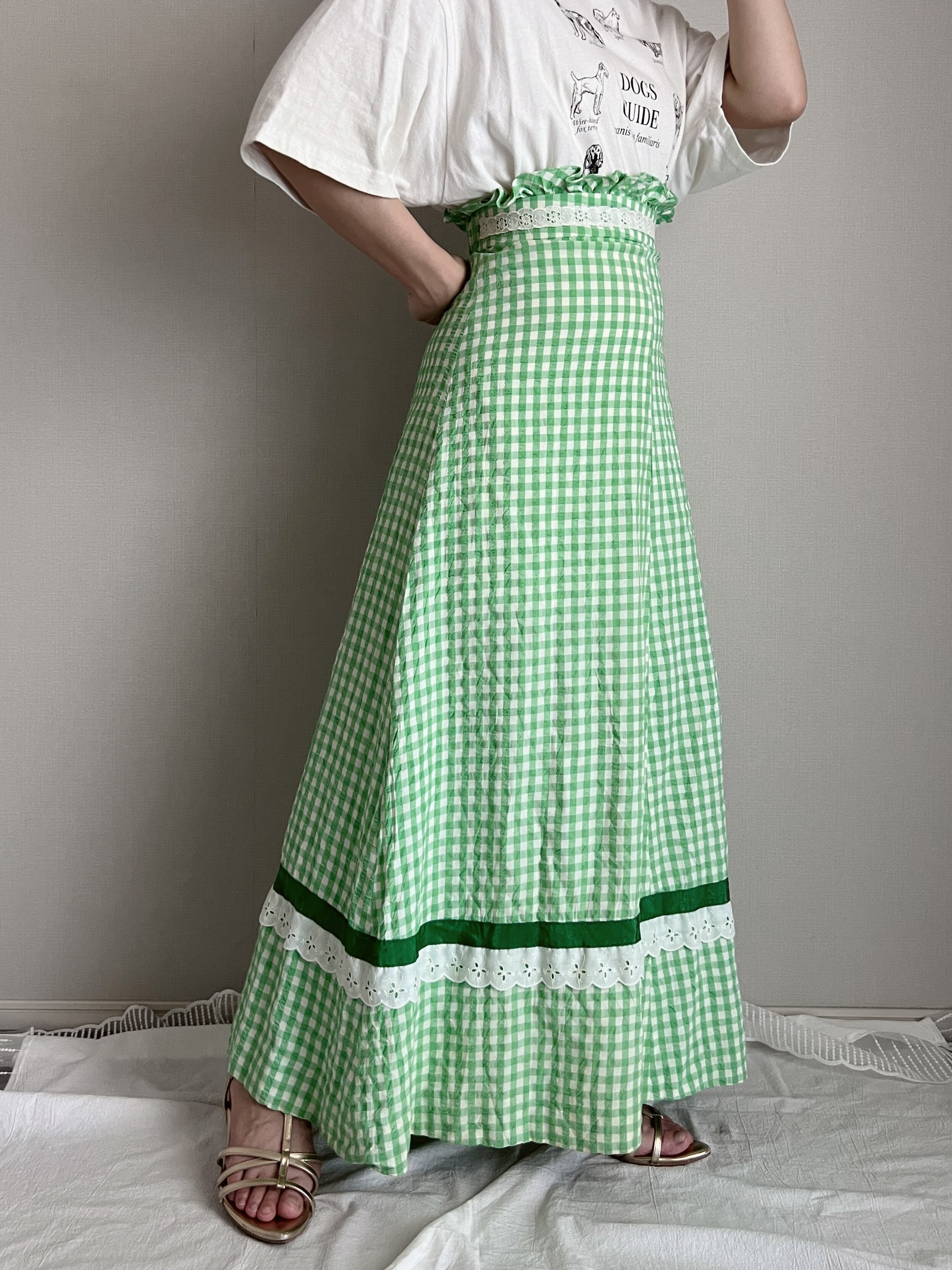high waist gingham check long skirt