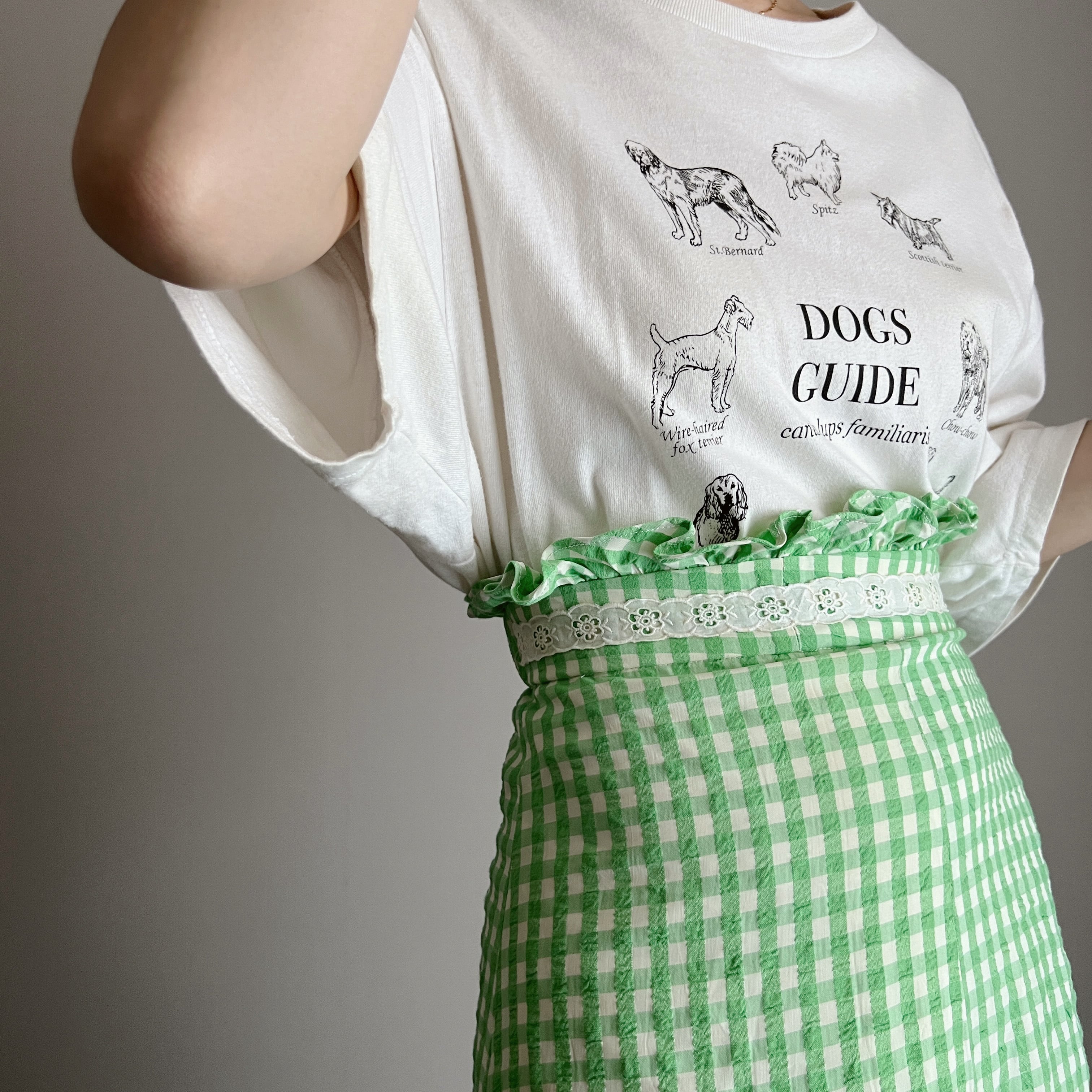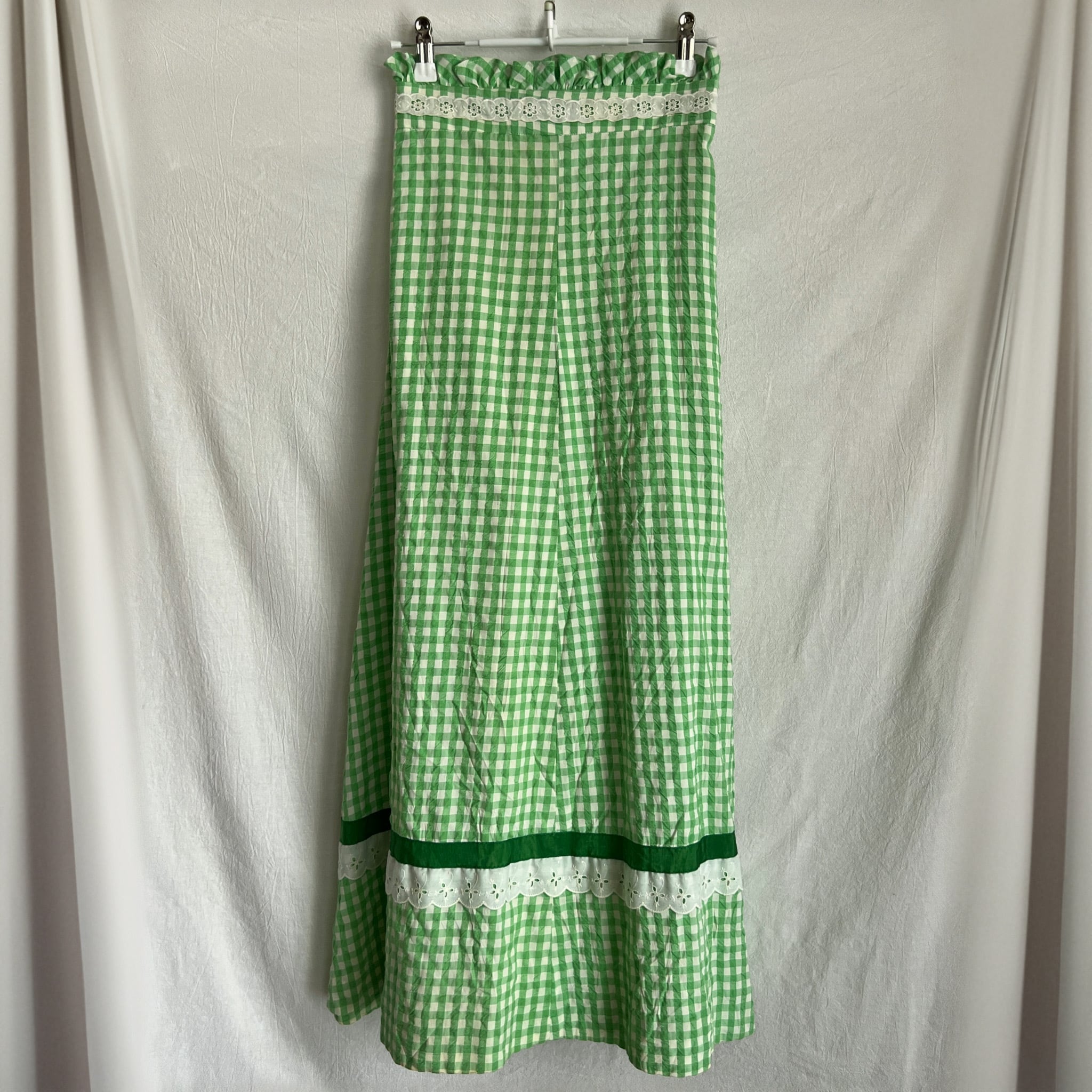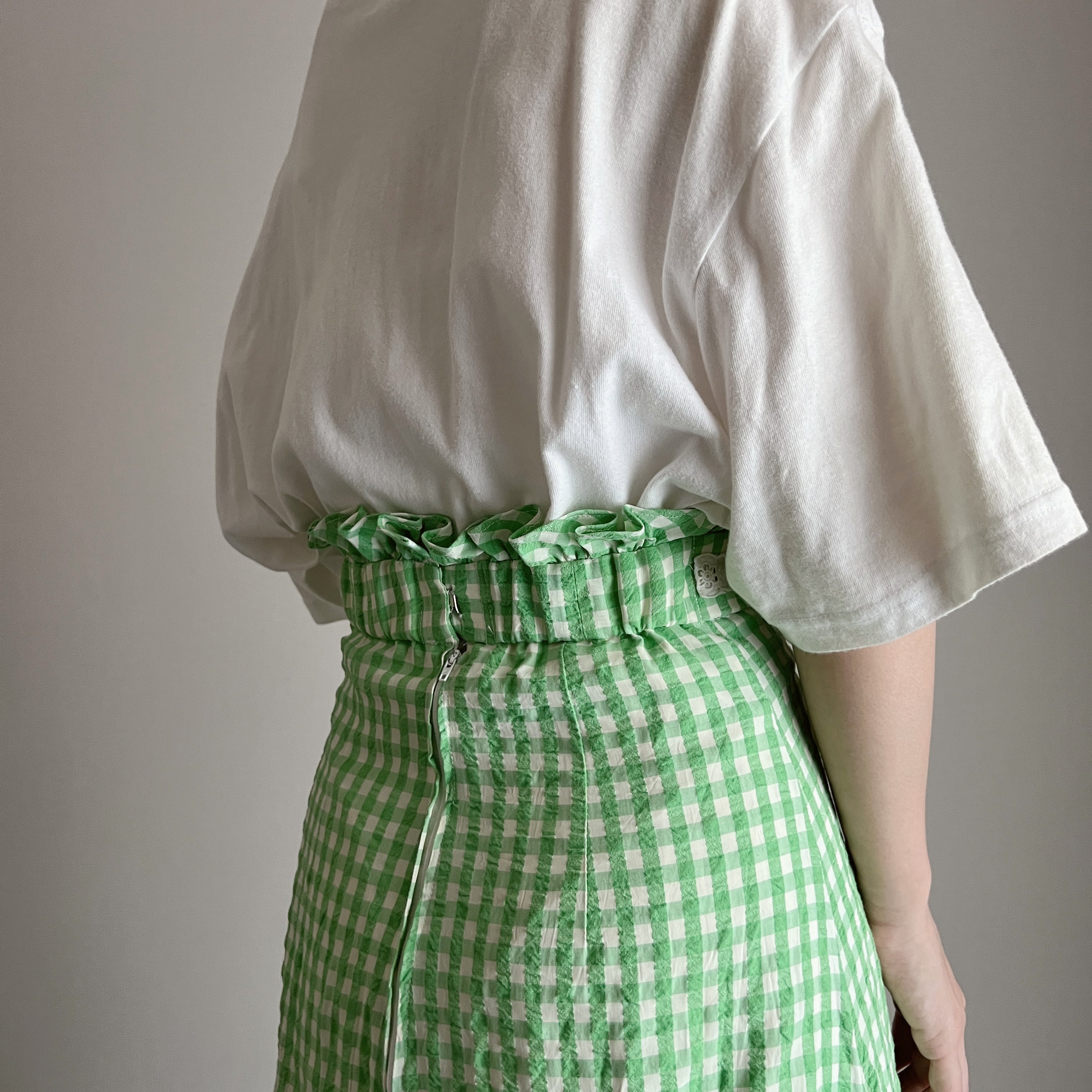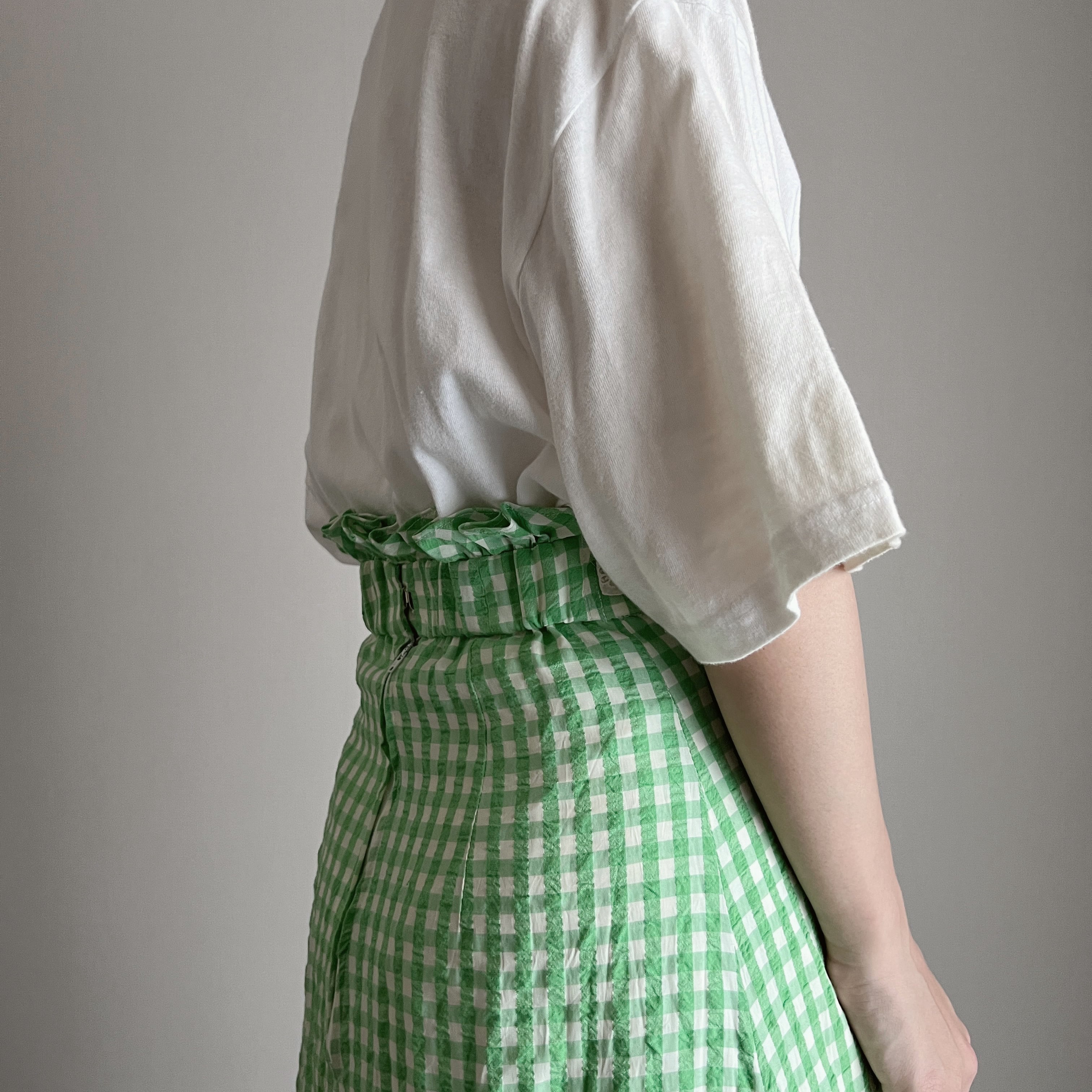 high waist gingham check long skirt
